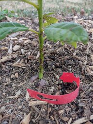 - 03.07.2025: label has been ripped off and damaged the trunk, I suspect it's the work of crows. It doesn't look like it's been girdled or compromised water transport. I've taken off all the labels of the trees planted in the first row to ensure it doesn't happen again.
